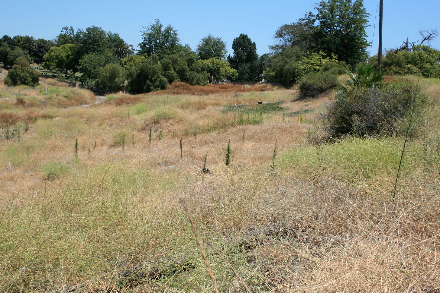 In 1881, William Willmore partnered with J. Bixby & Co. to develop the American Colony, a 4,000-acre piece of Rancho Los Cerritos. The 350-acre townsite, Willmore City, would eventually become downtown Long Beach. The rest of the American Colony was divided into 20-acre farm lots numbered 1 through 185. Willmore City and the American Colony were renamed Long Beach in 1884, but the farm lots remained until rapid urbanization and the arrival of the Pacific Electric Railway in 1902. Because of its terrain and role in the city’s water infrastructure, Farm Lot 59 was never developed—remaining city-owned and largely forgotten.